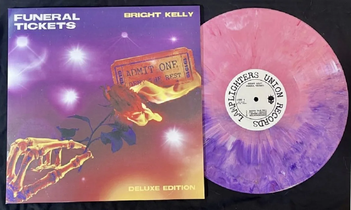Funeral Tickets DELUXE is here. Limited to 200 copies, made in the USA by Softwax Records on second-use ecomix vinyl in a purple/pink random swirl. No two are alike. Side A is the EP you know and love. Side B is a piano-driven, stripped-back live studio performance collection.